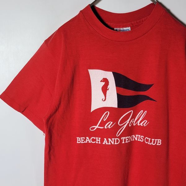 - ビンテージ la golla BEACH AND TENNIS CLUB Tシャツ Mサイズ 赤 シングルステッチ USA製 HANESボディー 匿名配送