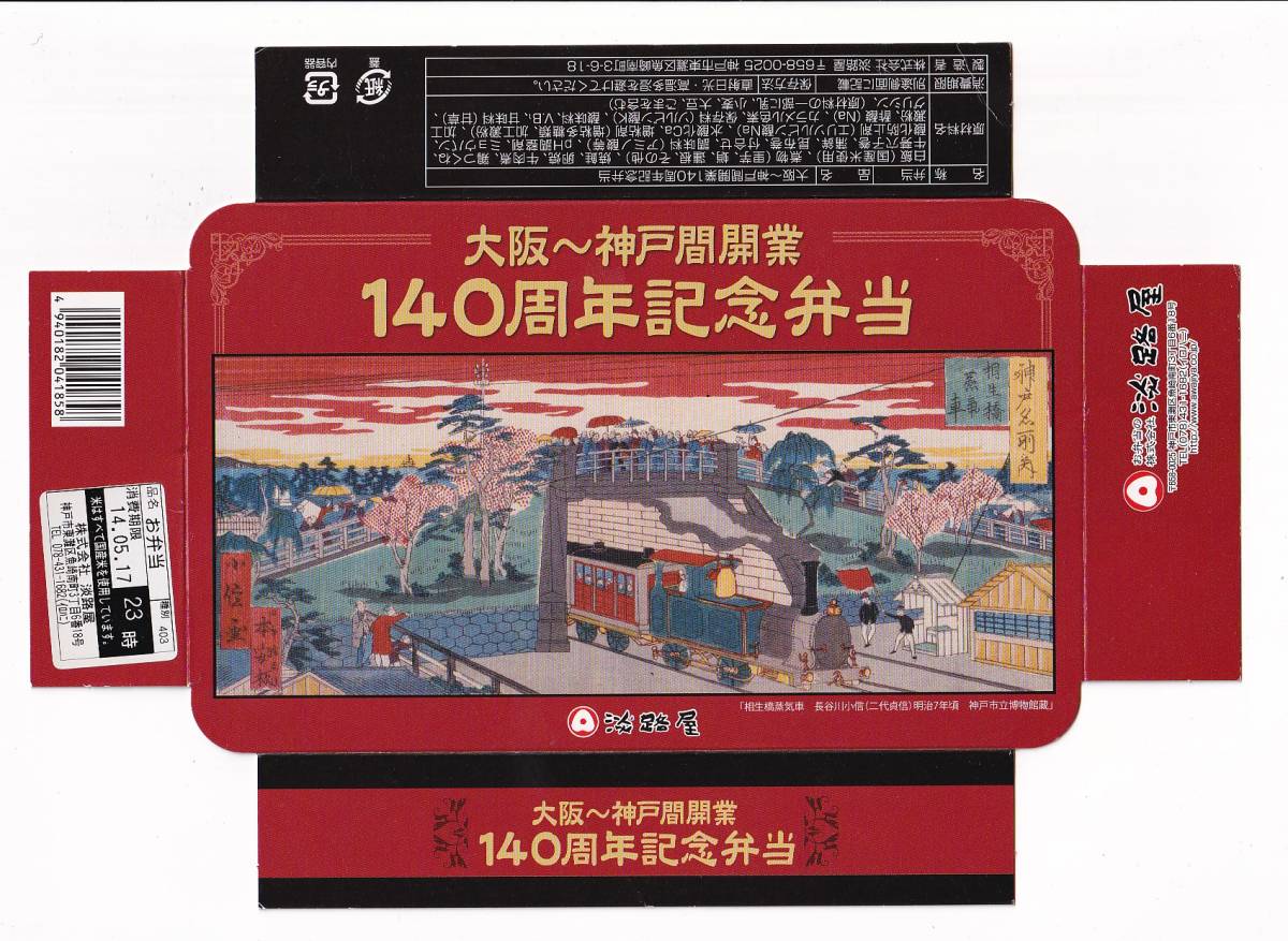 - ▽淡路屋▽大阪-神戸間開業 140周年記念弁当▽駅弁掛け紙
