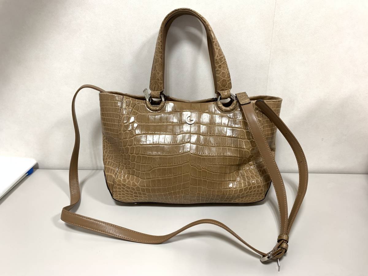 - 【質屋 尾張屋商店 東京】☆極美品☆ GRES グレ 本物 クロコダイル 2WAYバッグ 茶