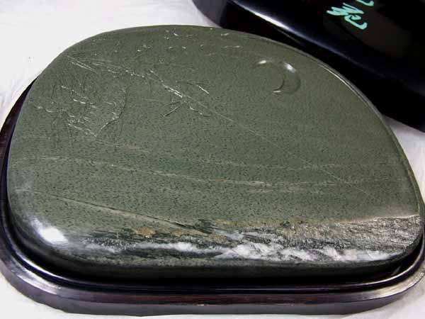 - 半値セール■龍香堂■ 歙洲石(きゅうじゅうせき)龍尾魚子紋硯「山景三日月」○●