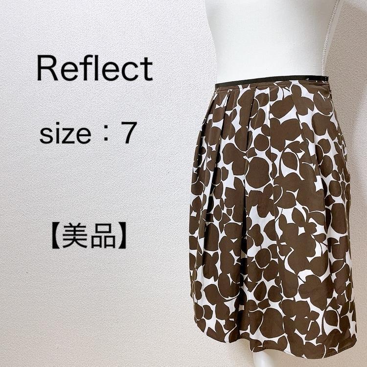 - 【美品】Reflect リフレクト フレアスカート タック サイドジップ 茶 白