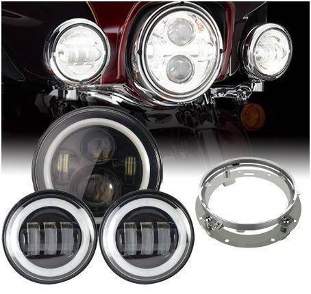 - 5-599 ライト LED ヘッドライト 7インチ ヘイローフォグライト 4.5インチ ハーレー 4点セット