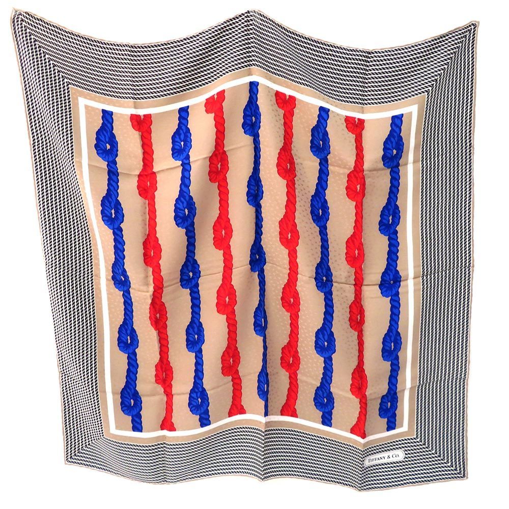 - 中古 美品 ティファニー 大判スカーフ 綱 縄 Aランク 小物 ベージュ TIFFANY あすつく【送料無料】【名谷店】