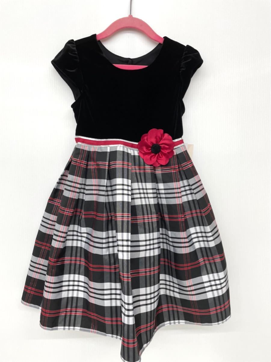 > Jona Michelle ジョナミシェル ガールズ チェック ドレス ベロア 5 / 5歳 お誕生日会 結婚式 お祝い 発表会 ★