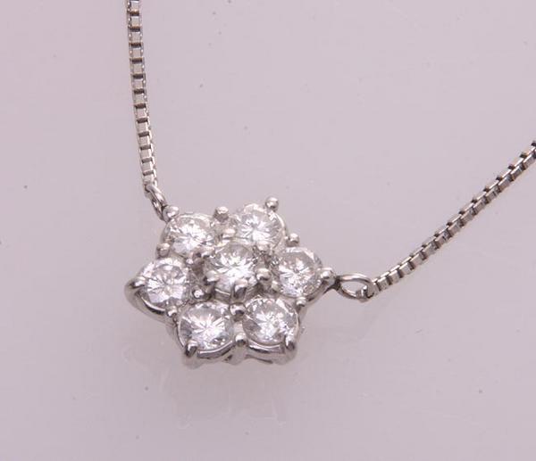 - 《質屋出品》Pt850★天然ダイアモンド0.7ct花デザインネックレス★C-1633