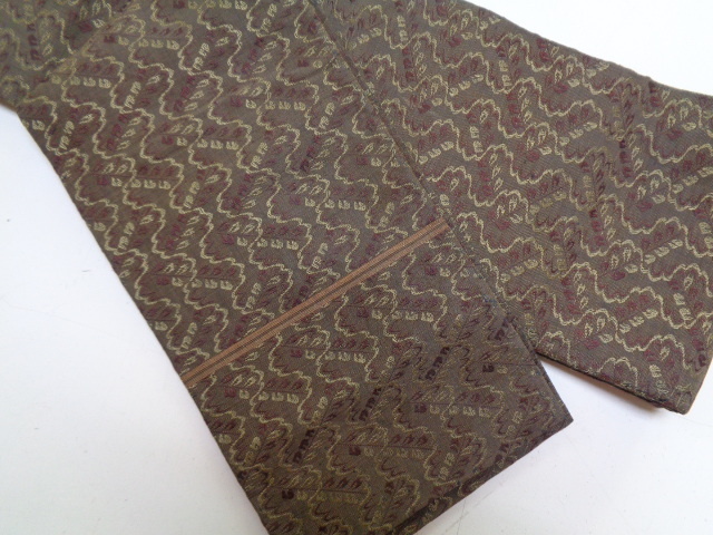 - C167-60 半幅帯 小袋帯 正絹 両面全通柄 網目花草文 昭和レトロ アンティーク