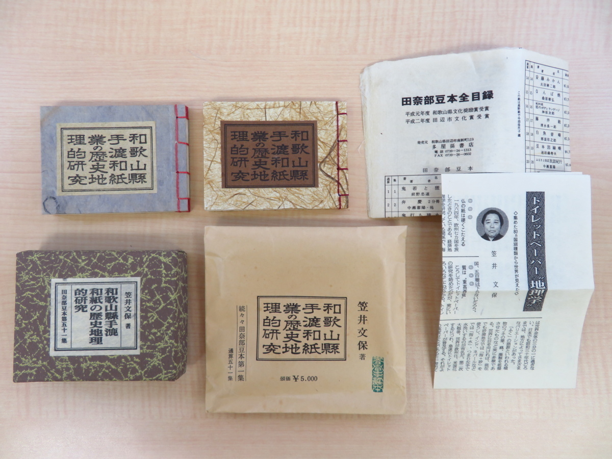 - 笠井文保『和歌山県手漉和紙業の歴史地理的研究』(全2冊揃)限定200部 平成5年刊(田名部豆本51)高野紙 龍神紙 保田紙