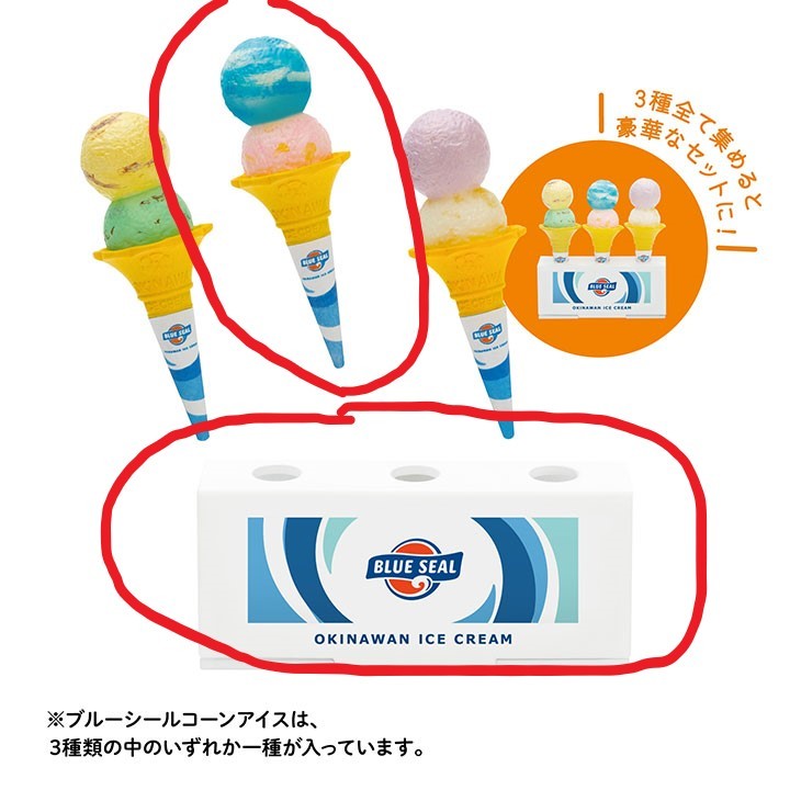 - 【即決】ブルーシール コーンアイス (ブルー+ストロベリー)+ アイススタンド ブルーシール ミニチュアコレクション ケンエレファント