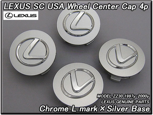 - ソアラZZ30後期/LEXUS/レクサスSC300SC400純正USホイールキャップ4個シルバー(銀ベース×メッキLマーク)/USDM北米仕様センターオーナメント