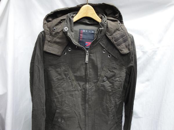 > ★送料割引!ブルゾンパーカ ミリタリージャケット ダメージ平織綿布 Sサイズ 茶 DENIMLAB★OUTLET未使用格安!