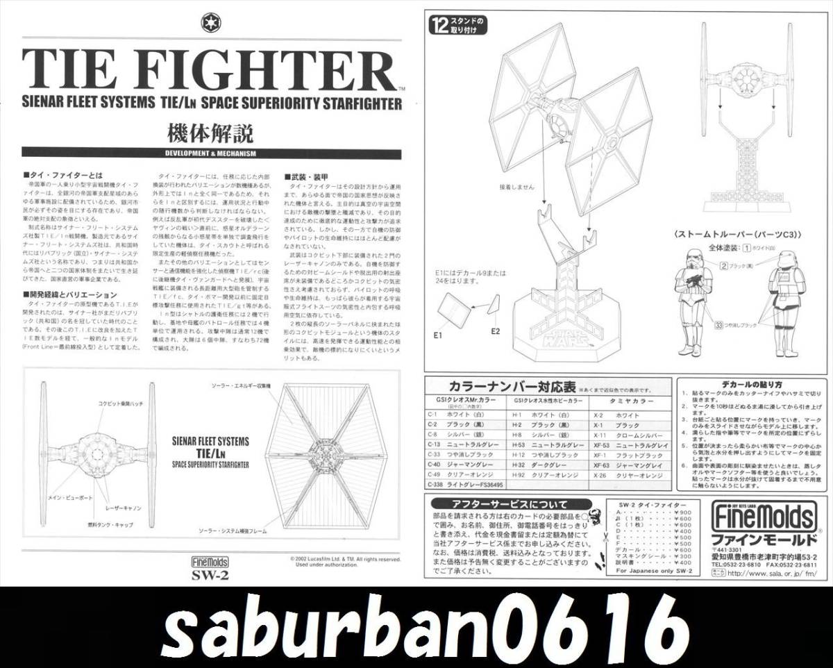 - R0000 スターウォーズ タイ ファイター サイナー フリート システムズ社 帝国軍 宇宙 戦闘機 FINE MOLDS ファインモールド SW-2 1/72説明書