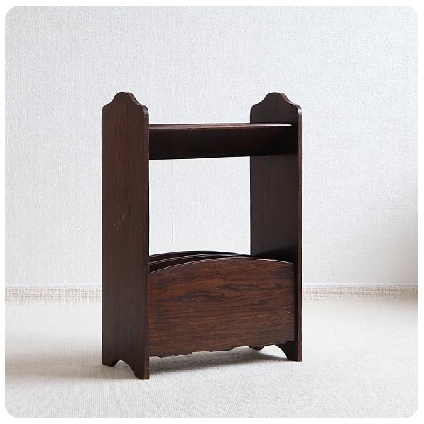 - イギリス アンティーク 本棚付きマガジンラック/オーク材家具/店舗什器/ディスプレイ/トラディショナル【見せる収納に】T-407