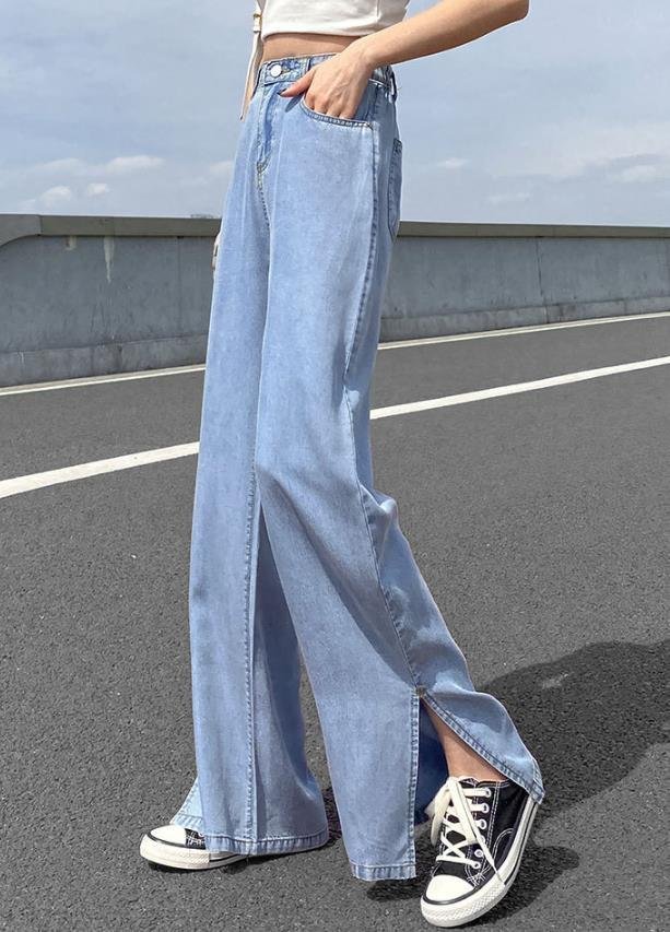 - LHK825★ジーンズ ワイドパンツ レディース 裾スリット デニム ロングパンツ カジュアル ガウチョパンツ ゆったり 薄手8/9/10分丈