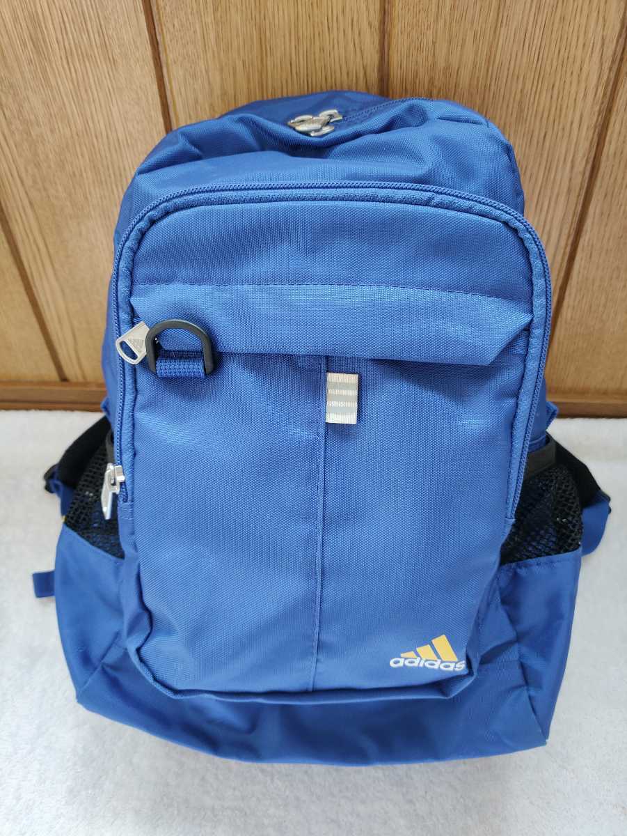 - 中古 adidas アディダス デイバッグ リュック ブルー 青 イエローライン DEORON LABEL ACE エース 抗菌防臭 deodorant & anti-microbial