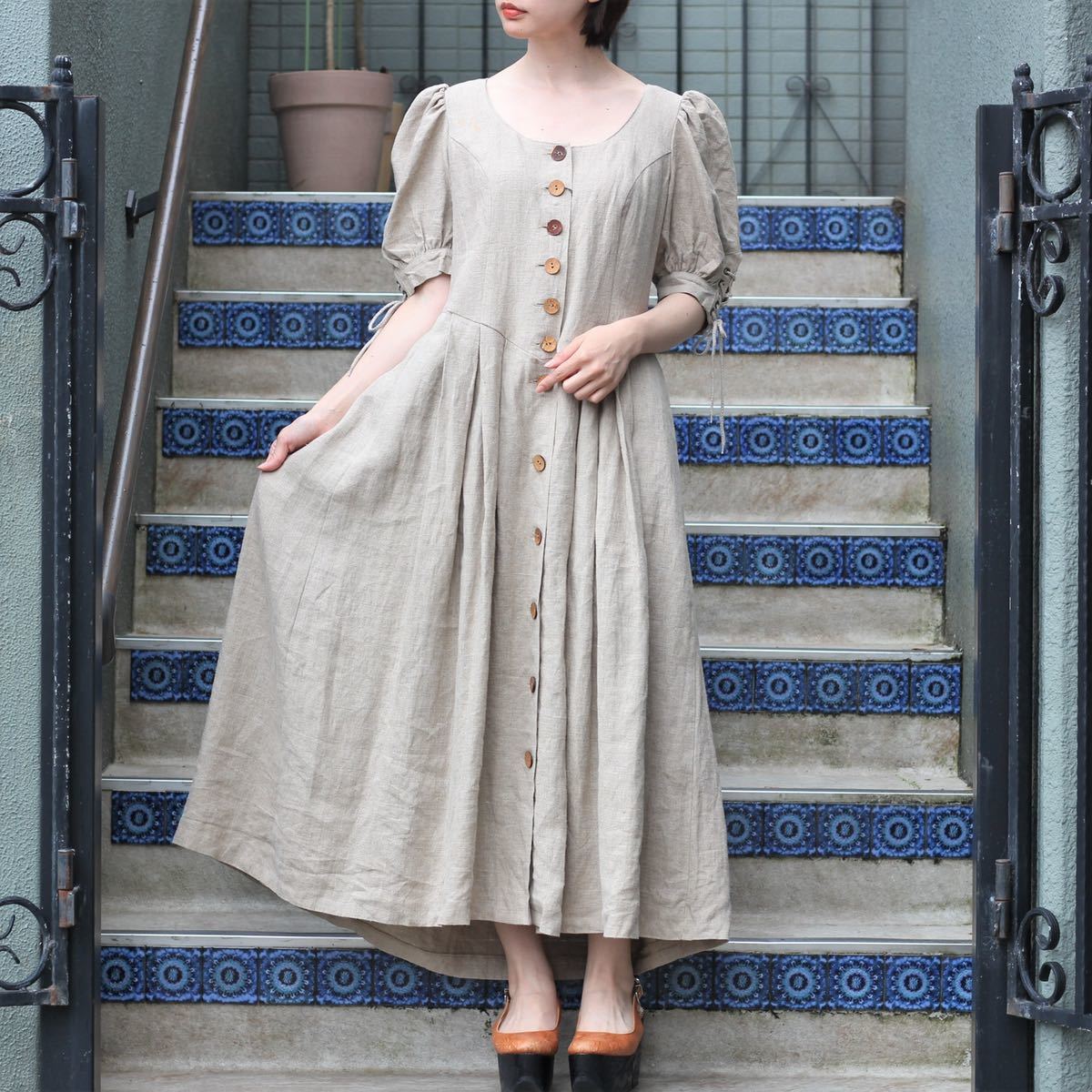 > *SPECIAL ITEM* EU VINTAGE Marianne Michael /ヨーロッパ古着ウッドボタンリネンチロリアンワンピース