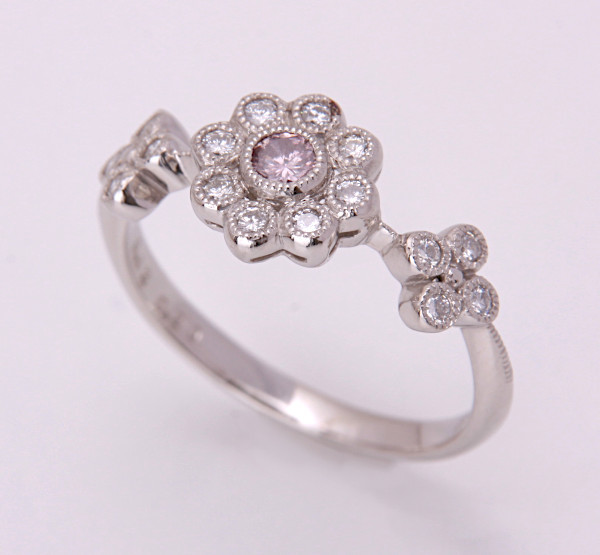 - 《質屋出品》Pt900★天然ピンクダイアモンド0.12t+0.20ctデザインリング★C-5677