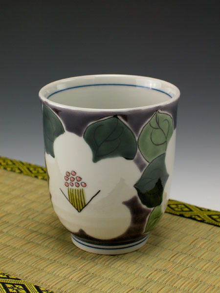 - 九谷焼工房 勝部明美 作 釉彩椿湯呑