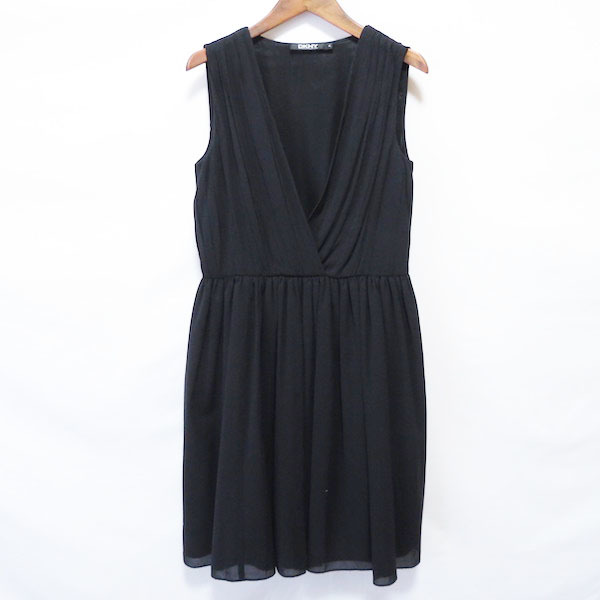 - #snc ディーケーエヌワイ DKNY ダナキャランニューヨーク ワンピース 4 黒 シルク ノースリーブ ギャザー レディース [759799]