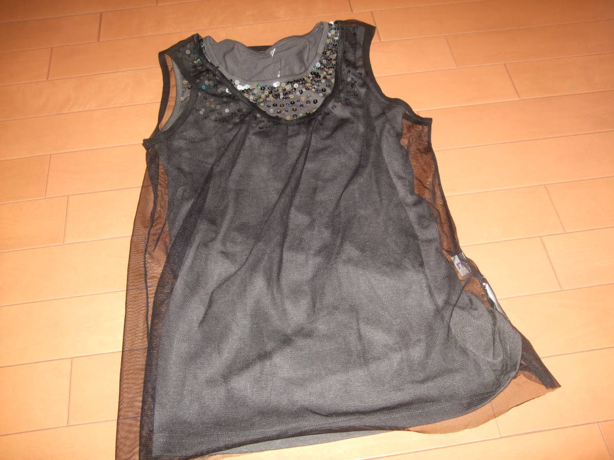 - 新品タグ付送料込即決☆チュール付スパンコールデザインタンクトップ☆サイズM