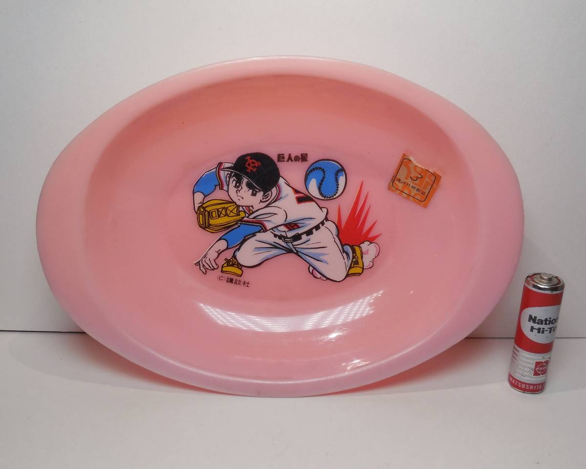 - 巨人の星 星飛雄馬 楕円形のような プラ お皿 ピンク 版権シール付き 講談社