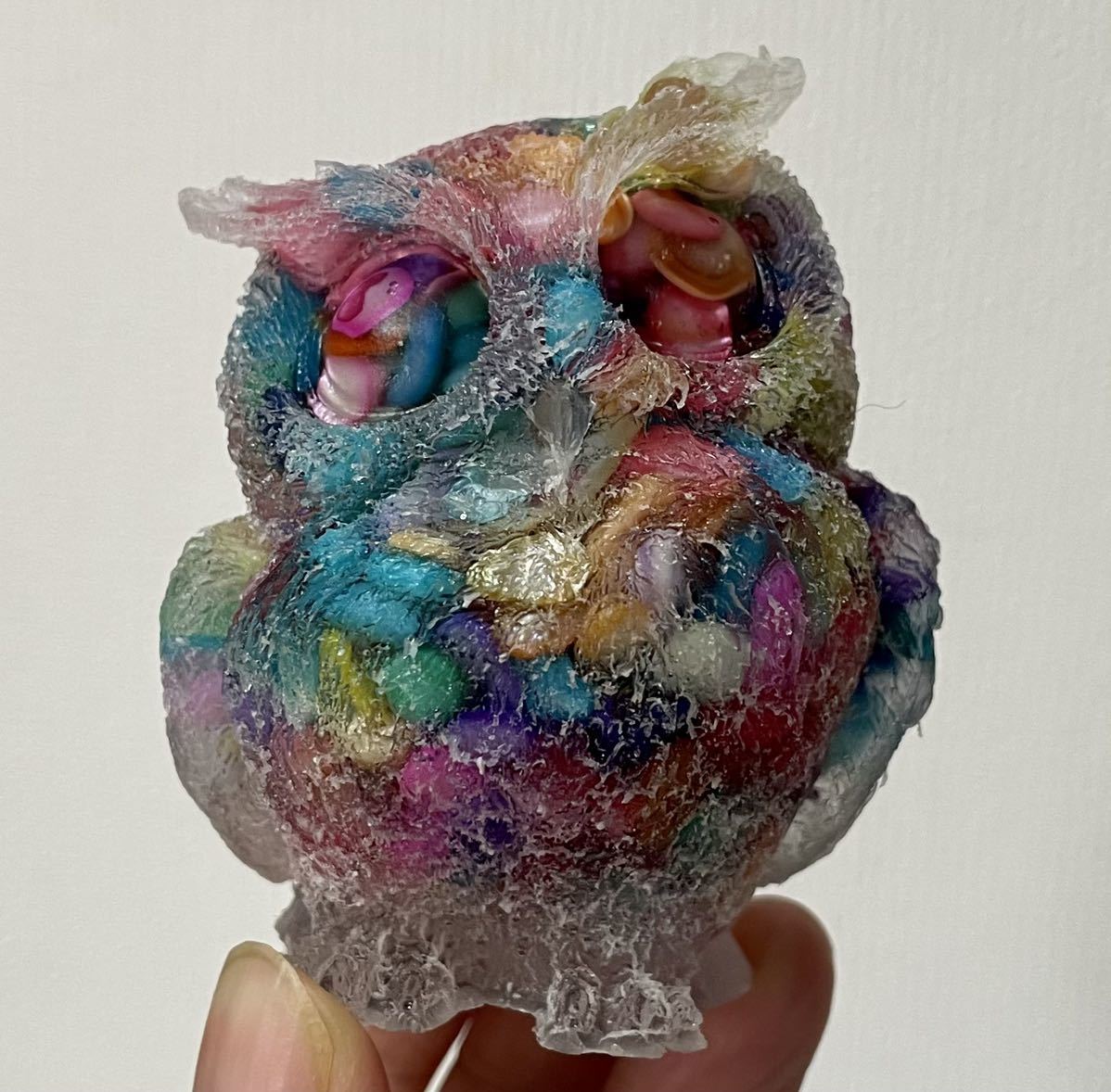 - 貝殻のフクロウ オルゴナイト 天然 置物 カラフル 縁起物 幸運 ラッキー パワーストーン インテリア 魔除 お守 小物グッズ 雑貨