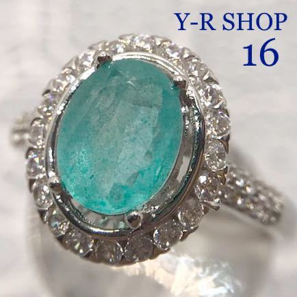 > 16号★パライバグリーンカラーストーン とホワイトトパーズのエレガントリング★レディース指輪シルバーアクセサリートルマリン新品宝石Y-R