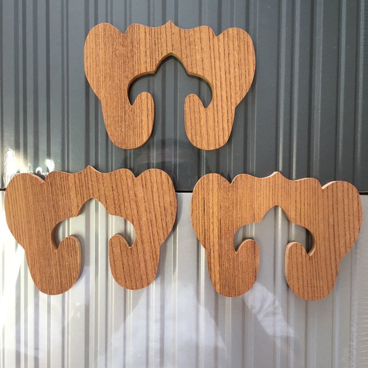 - ケヤキ 欅材 抜き加工パーツ コースター、インテリア飾り等 3個セット