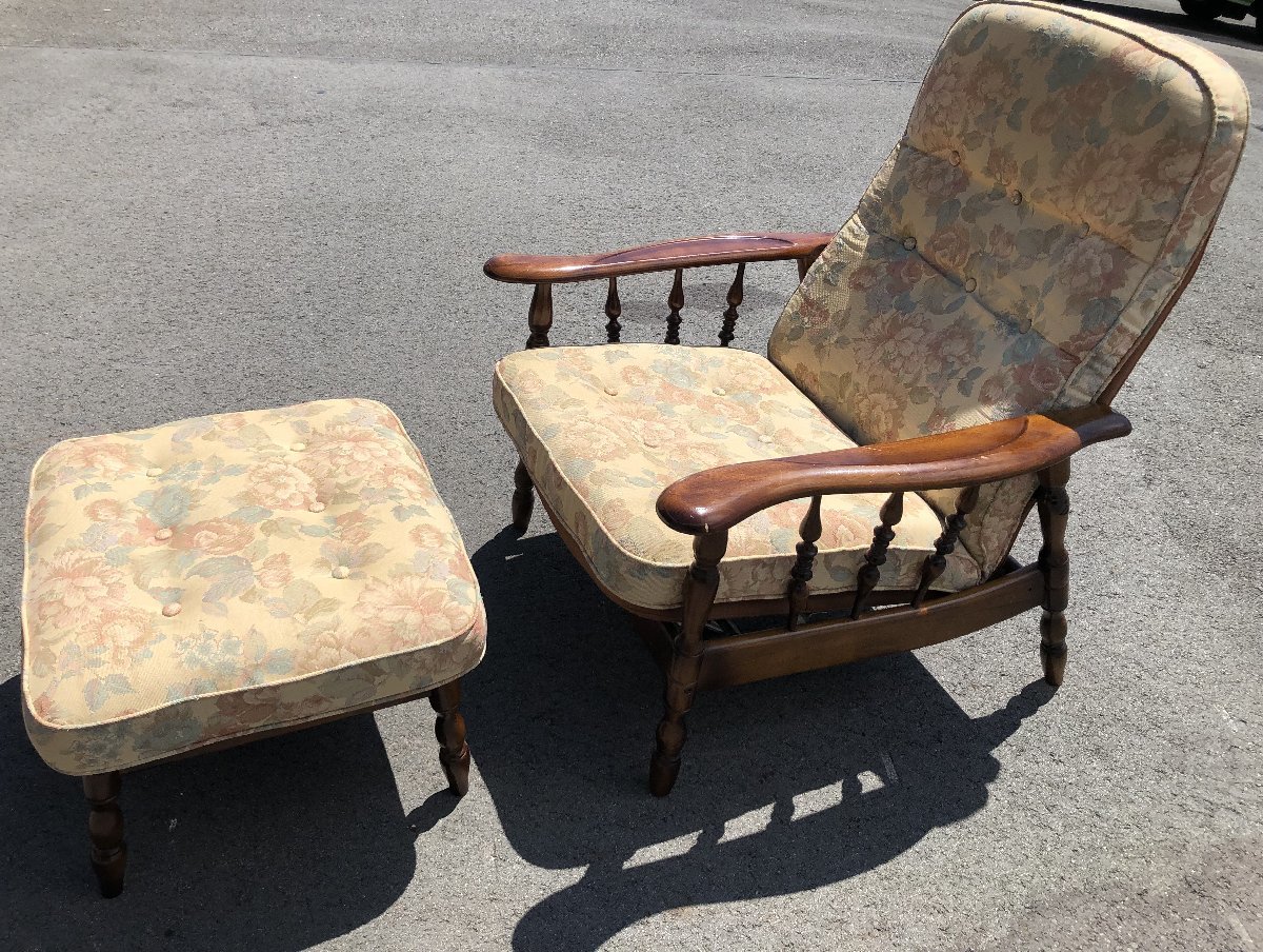 - 中古 Karimoku カリモク コロニアル リクライニング パーソナルチェア 1P アームチェア オットマン 2点セット 静岡県裾野市