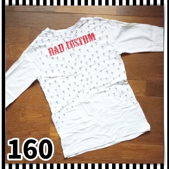 > 160 RAD CUSTOM ラッドカスタム ロンT 七分袖 長袖 Vネック Tシャツ ドクロ 髑髏 ガイコツ スカル クロス カジュアル かっこいい 半端袖 白