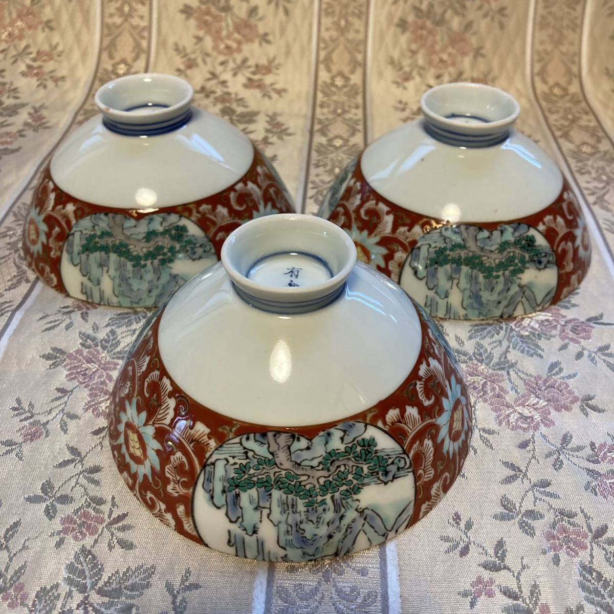 - 昭和レトロ★有楽 ハンドペイント 飯碗 3客セット