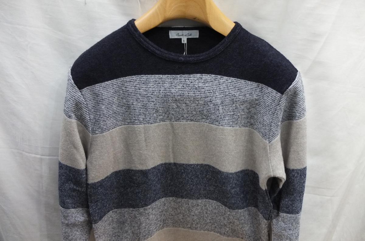 > ★送料割引!ゴルフセーター 長袖Tシャツ クルーネック フリース裏起毛 パネルボーダー L 紺グレィ CREATION CUBE★未使用格安!