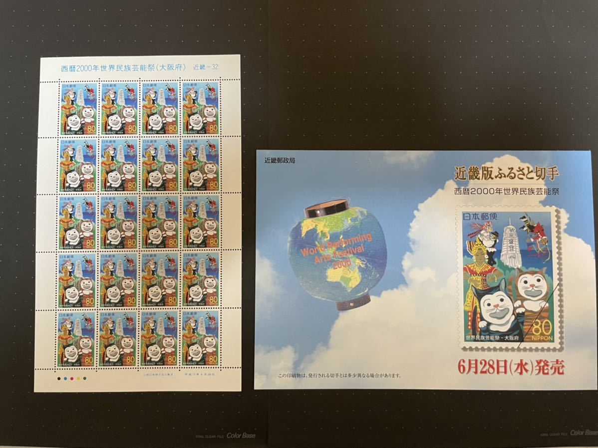 > ☆★☆ふるさと切手★西暦2000年世界民族芸能祭~大阪府~★近畿-32★2000年★80円×20★新品未使用品★送料無料☆★☆