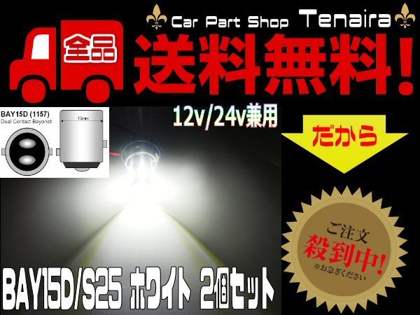 - BAY15D/S25 LEDバルブ ダブル球プロジェクターレンズ付 白色ホワイト12v 24v 兼用2個セット ストップ ブレーキトラック メール便送料無料/5