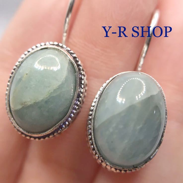 - 天然石★アクアマリンのアンティーク調ピアス★レディースシルバー 925刻印カラーストーンアクセサリーエスニックインドジュエリーY-RSHOP