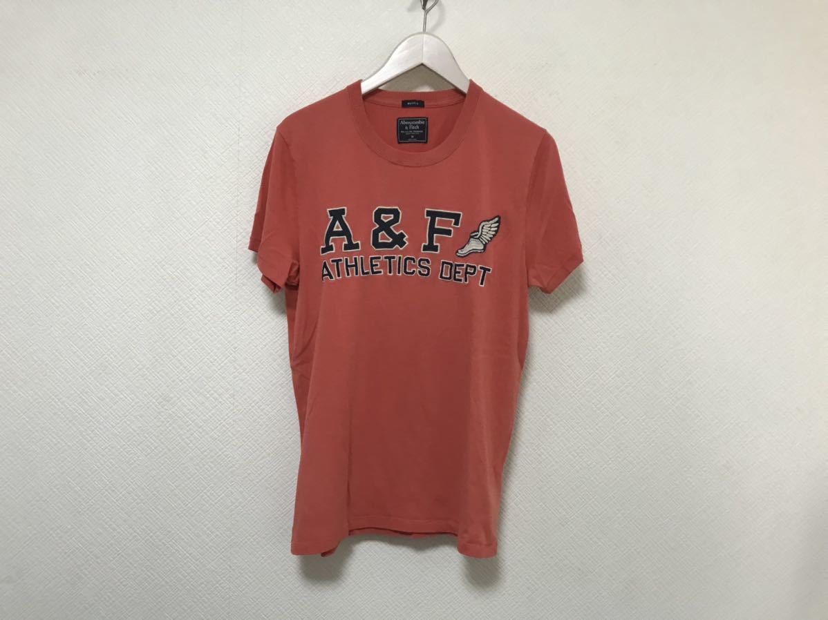 > 本物アバクロンビーアンドフィッチAbercrombie&FITCHコットンロゴ刺繍プリント半袖TシャツメンズビジネスアメカジミリタリーサーフピンクM