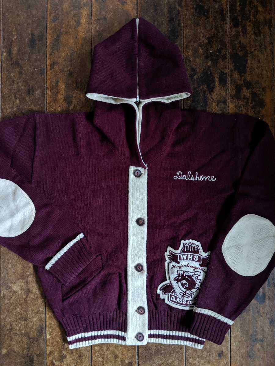> デコ ★ビンテージ ウール ニット アワード セーター フード パーカー ジャケット カーディガン チェーン ステッチ リブ スウェット シャツ