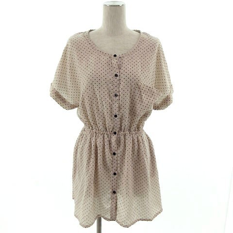 - ローリーズファーム LOWRYS FARM チュニック 半袖 ドット 水玉 ベージュ 黒 M レディース