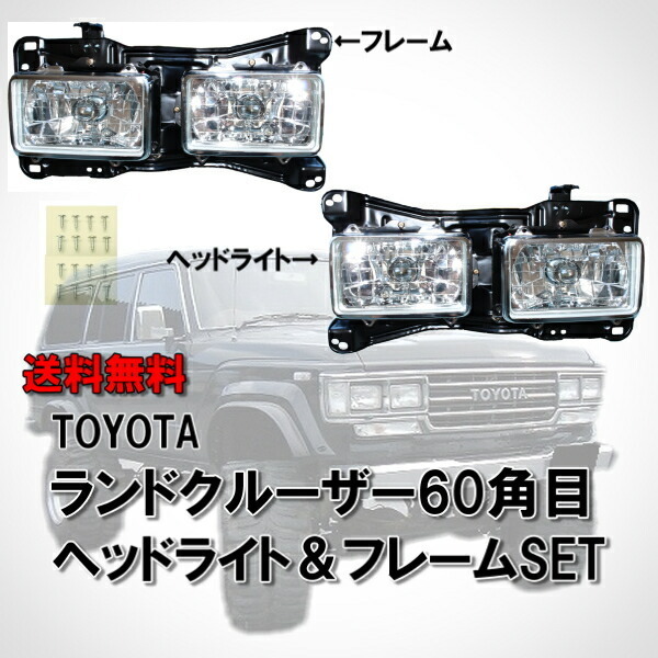 > トヨタ ランドクルーザー 60 系 純正タイプ 角目 4灯 ホワイト ヘッドライト ヘッドライトフレーム 左右 ランクル 5インチ 送込