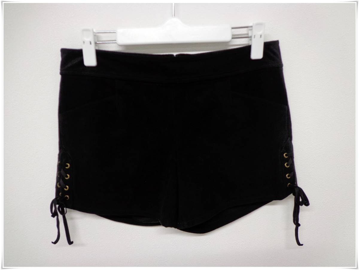 > ★636【良品 送料無料】AZUL by moussy アズールバイマウジー レディース ショートパンツ M 黒 ベルベット生地 バックファスナー 編み上げ
