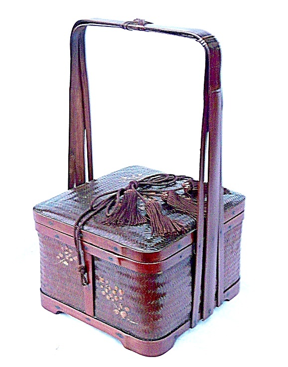 - 手提げ籠 茶器収納箱 中古品 細密製作 竹細工