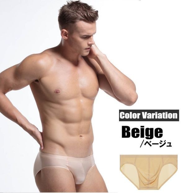 - 送料無料 メンズ ブリーフ 下着 男性用 パンツ エロパンツ モッコリ ビキニブリーフ 男性下着 タグレス コックリング H0094 ベージュ LL