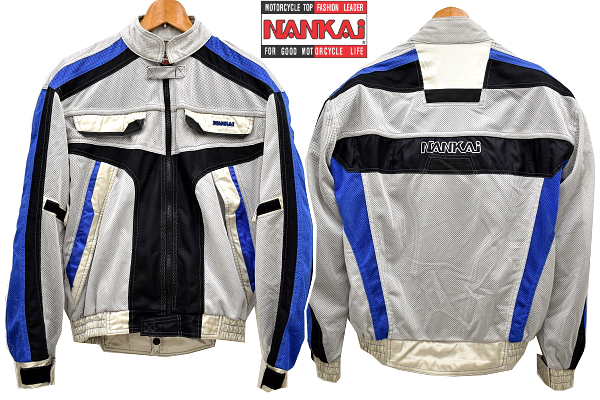 > A-3972★美品★NANKAI ナンカイ 南海部品★グレー灰色 プロテクター入り バイクウェア ライディング メッシュ ジャケット LL