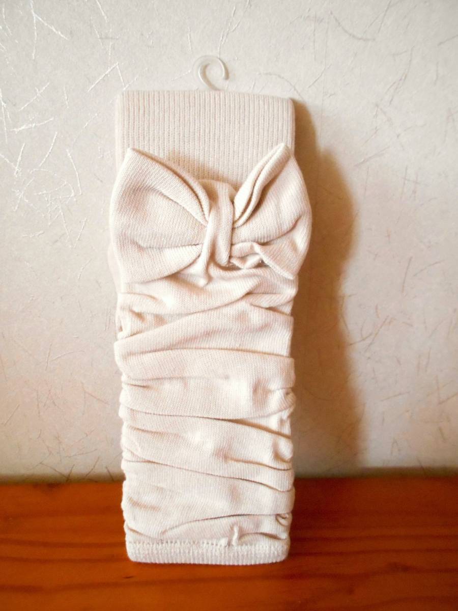 - ●未使用●リボンが付いたクシュクシュっとしたキナリ色・レッグウォーマー ☆靴下