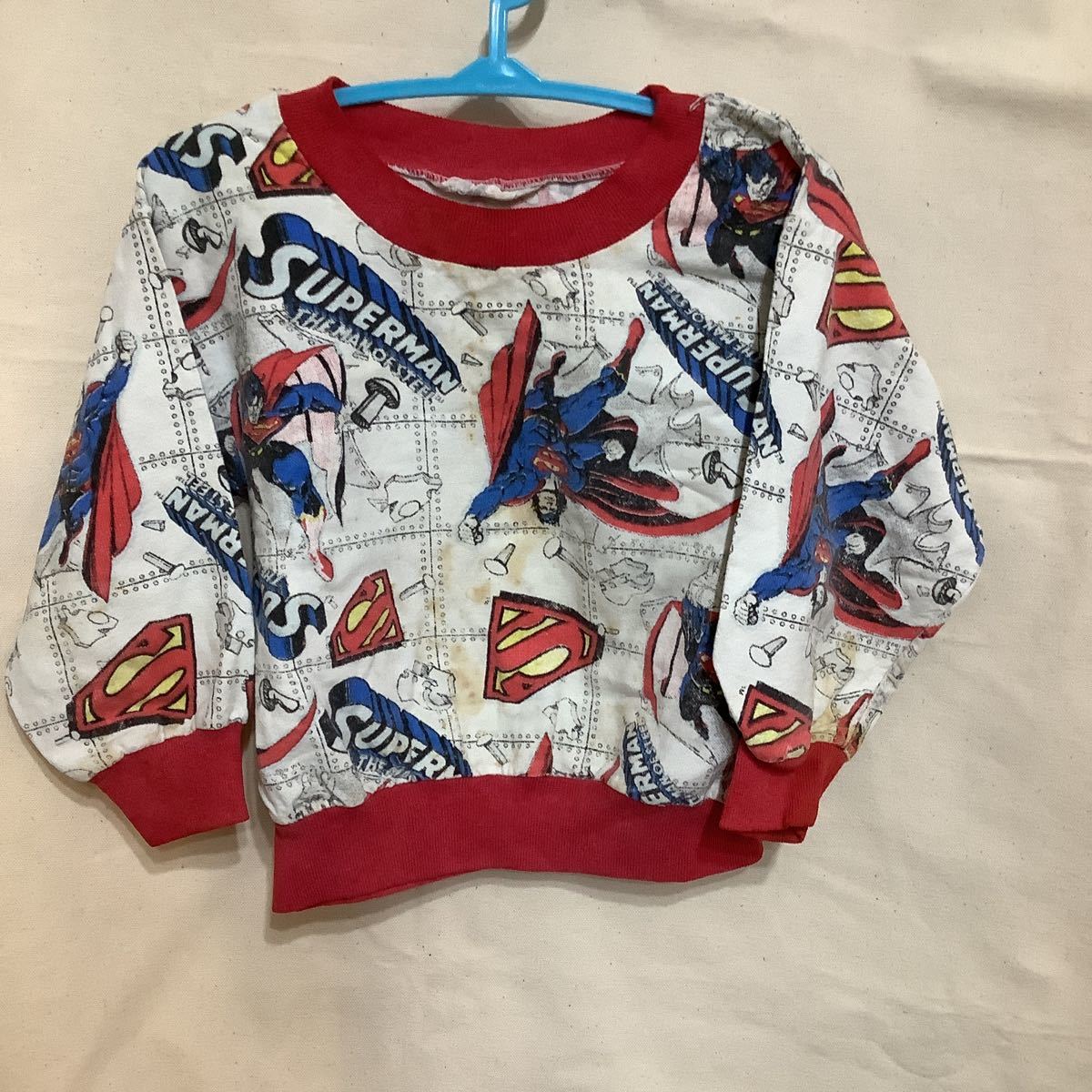 - k56.B品キッズスーパーマン長袖Tシャツ古着アメカジUSA子供服アメコミ汚れありそう柄