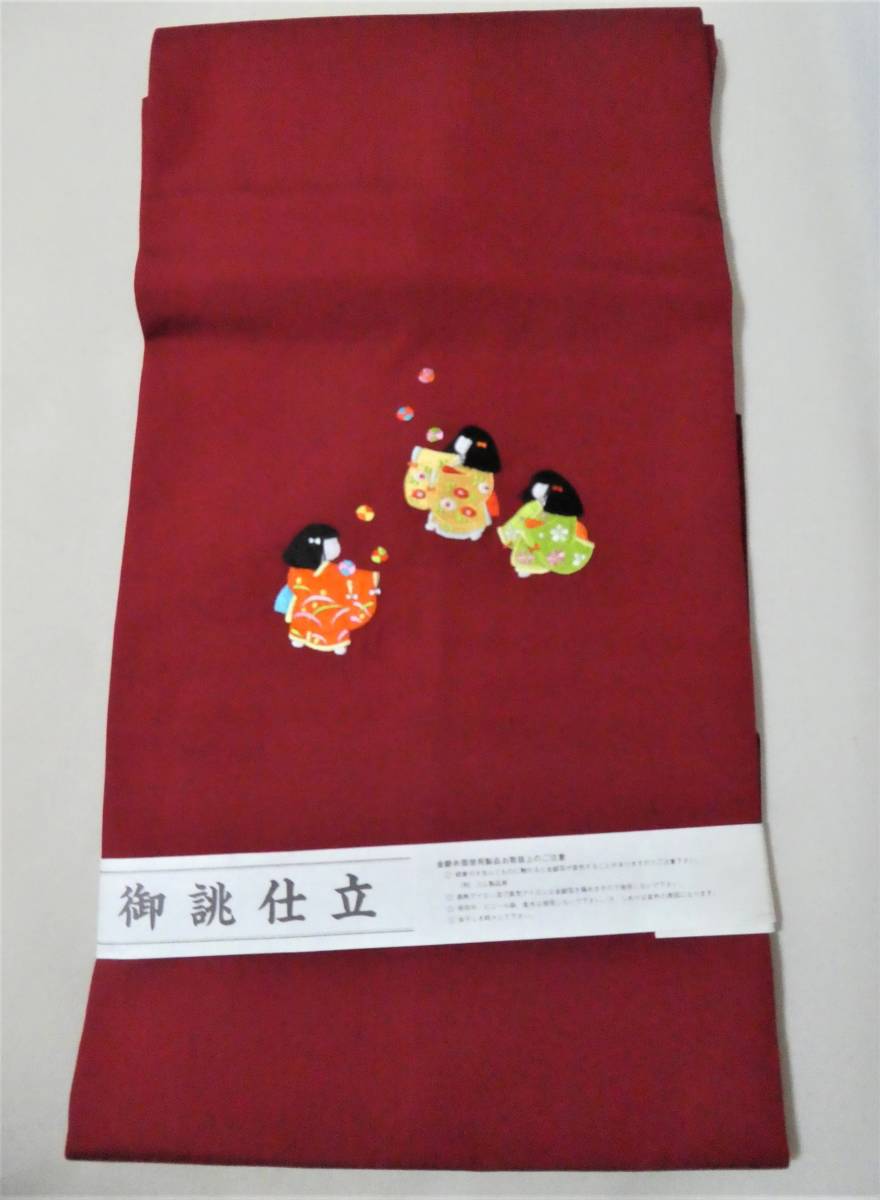 > ⑧和装 帯 名古屋帯 赤 人形絵 約31㎝×368.5㎝