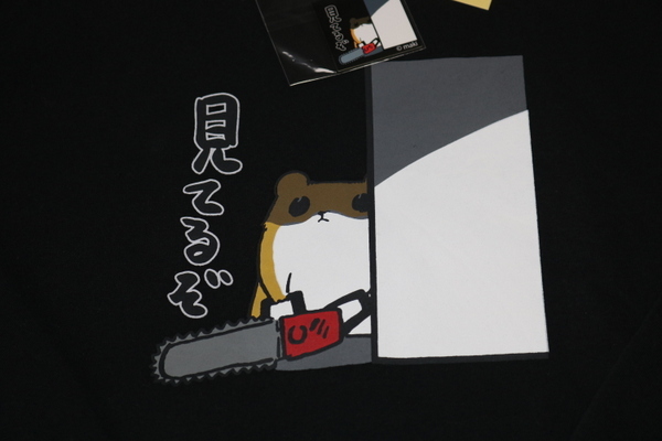 - チェーンソーハムスター トレーナー 黒 レディース M-L 見てるぞ シール付 新品 未使用