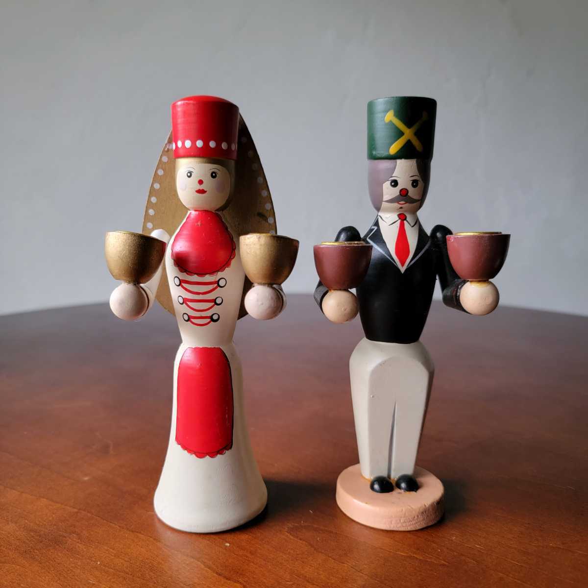 - ドイツ 民芸品 天使と鉱夫 2体セット キャンドルスタンド 燭台 置物 オブジェ アンティーク インテリア ハンドメイド レトロ