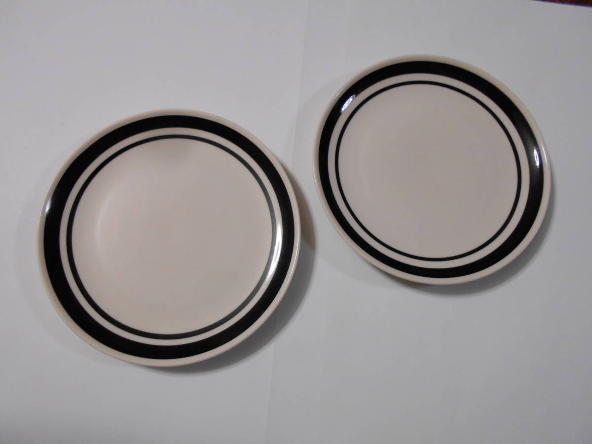 > 未使用長期保存品 中皿 2枚 白に黒サークル 当時少し使用?