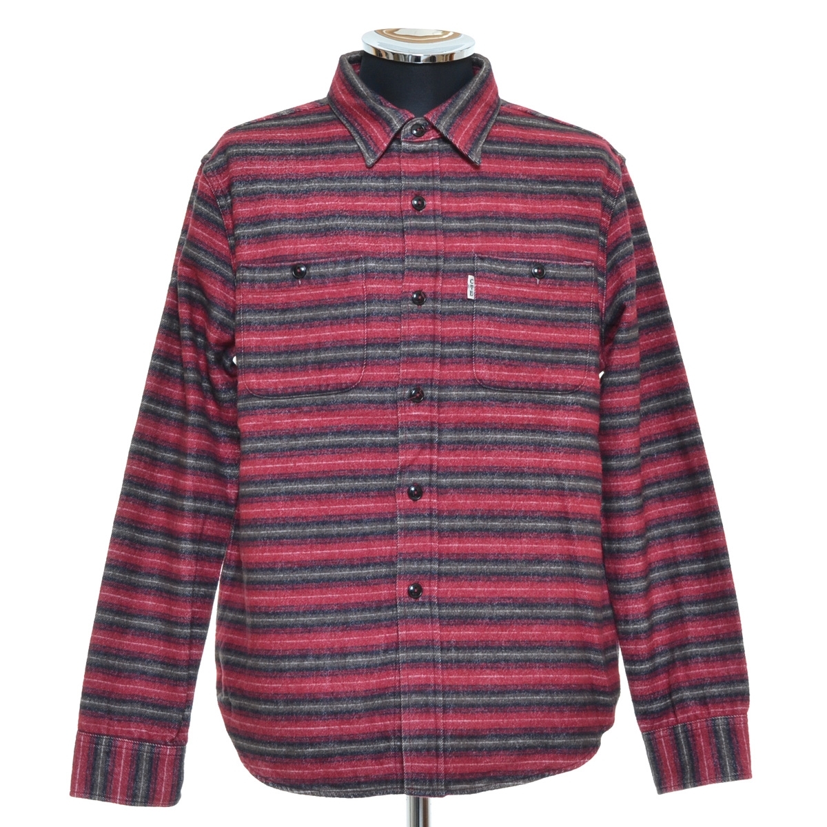 - ●453837 COOTIE クーティ ●フランネルボーダーワークシャツ FLANNEL BORDER WORK SHIRT 長袖 サイズM メンズ レッド