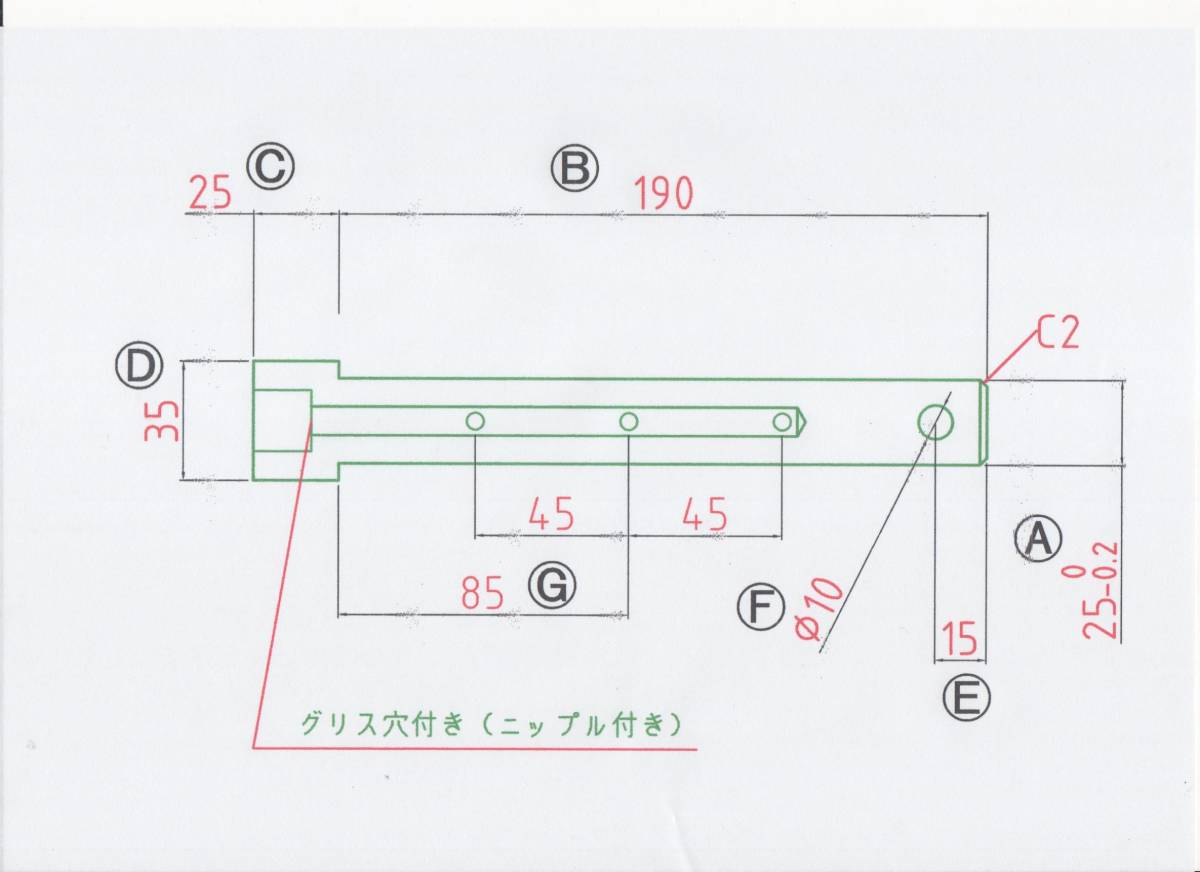 - NO 1389 φ25用 ツバ下190mm グリス穴2か所付きバケットピン1本